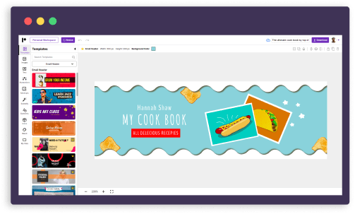 The recommended dimensions for Email header is 600 x 200 pixels while it should only be in the JPG, PNG image format. You don’t have to worry about these issues with our Email header maker, which comes loaded with all these prerequisites.