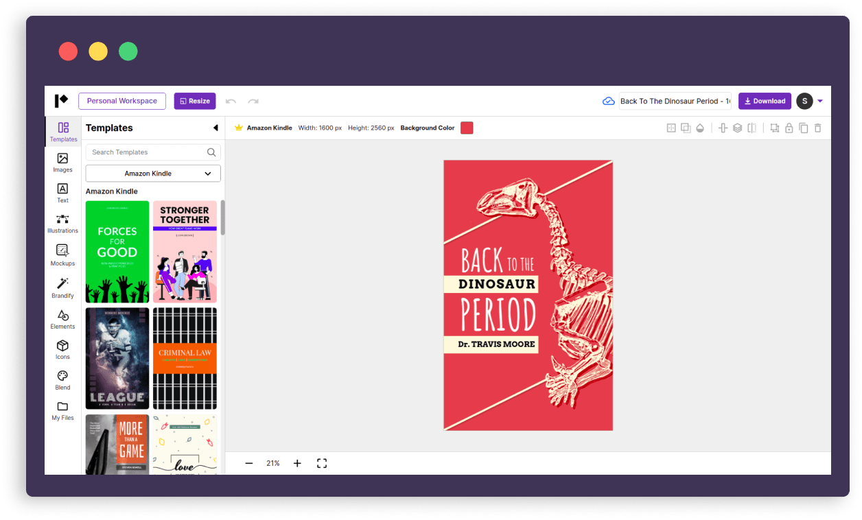 When you’re done designing, simply download your new cover in different file formats and upload it on Kindle.